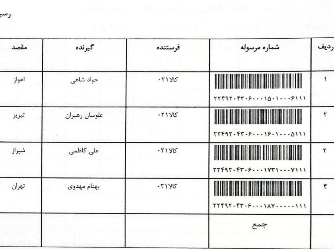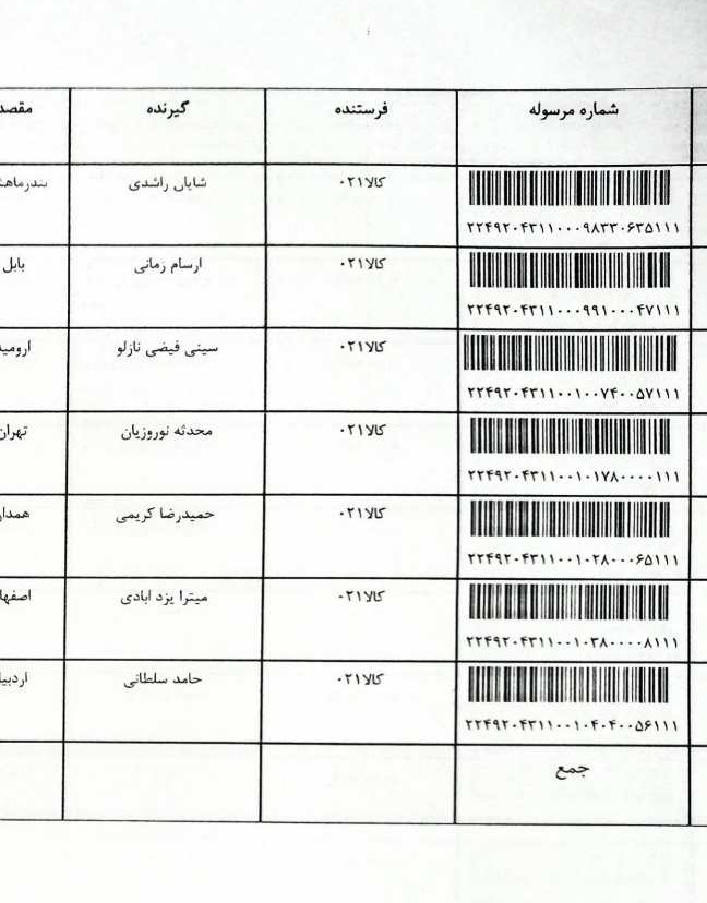 ارسالی های پستی اخیر 6 بهمن 1404