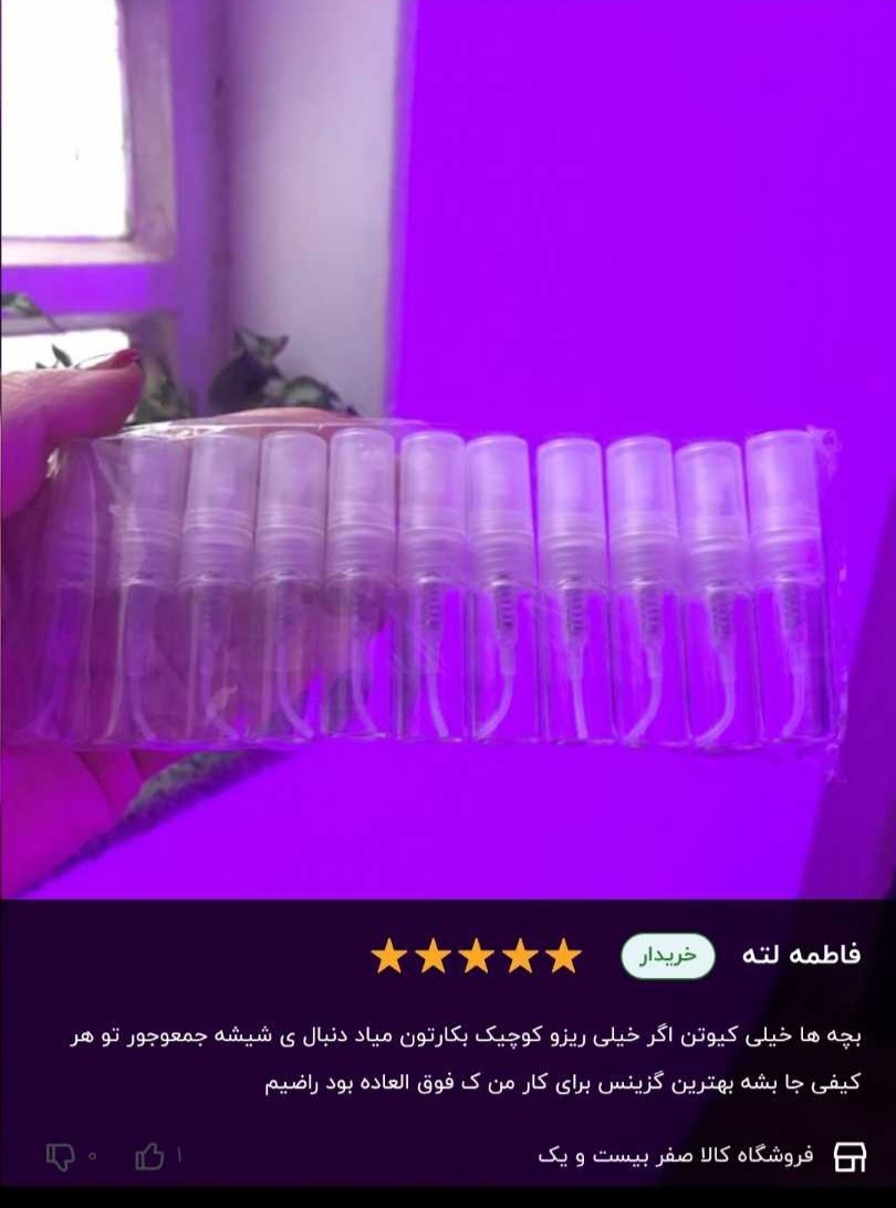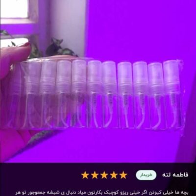 شیشه عطر ۳ میل با درب پیچی و اسپری، مناسب ترین شیشه دکانت عطر جهت تهیه نسخه های دستریز عطر میباشد، جنس بدنه از شیشه مقاوم و درب و اسپری پلاستیکی میباشد.